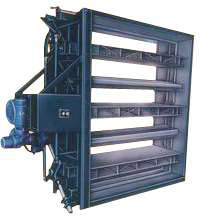 脫硫擋板門用于煙氣脫硫系統吸收塔進、出口或旁路煙道上,或用于煙氣脫硝及煙氣除塵系統中。脫硫煙氣擋板門通常采用百葉窗式雙層擋板結構,關斷時雙層擋板之間通入密封空氣進行氣密封,實現隔離關斷煙氣的作用。
